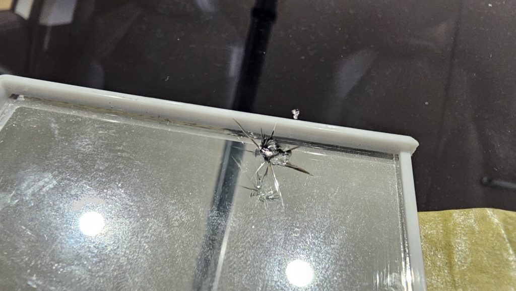 傷内部に注入するレジンは、紫外線で硬化するため屋内作業が原則です。当社は日本で数少ない3年保証を付けることのできる応急処置ではない修理を心がけています。