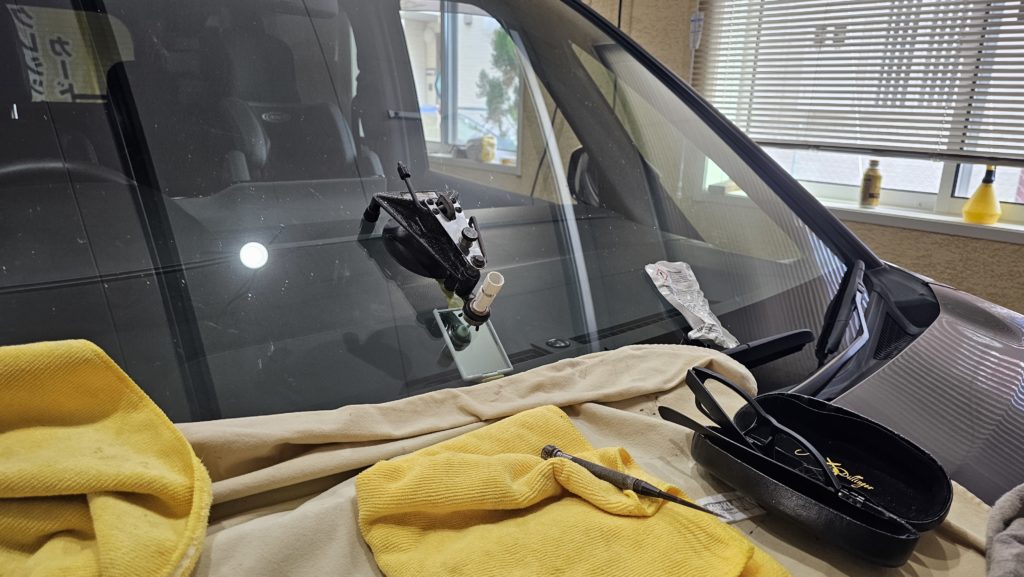 フロントガラス修理は適切な温度管理と時間を掛けて可能な限り屋内作業が望ましいのです。